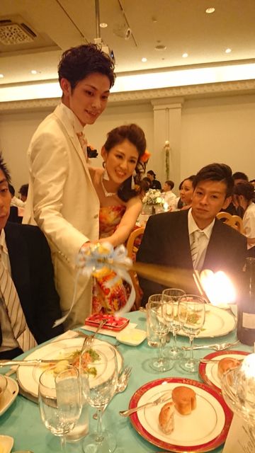 7月21日に豊田家の次男の結婚披露宴が行われました✨おめでとうございます㊗️豊田家と言いますと、豊田家のお父さんとうちの亜紀とは同級生でして、豊田家の長男、湧哉は金鍋で随分長く、バイトをしてくれていました。勿論、次男の和哉もバイトをしていました。家族ぐるみでお付き合いさせて頂いています。湧哉の結婚式も参列させて頂きました。いまでは可愛い長男が生まれ、幸せに暮らしています✨