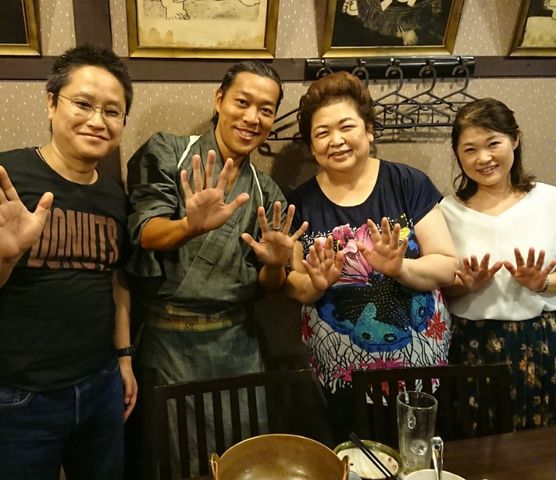 和 環 輪を書いたのも潤君です。ちなみにうちのユニフォームのティシャツのデザインも潤君に依頼しました。「ひとりやないから笑えるんや」また、ご来店時に見てくださいね✨みんなで一緒に潤君とご一緒頂きましたカメラマンの方に写真を撮って頂きました✨