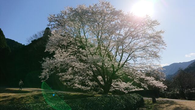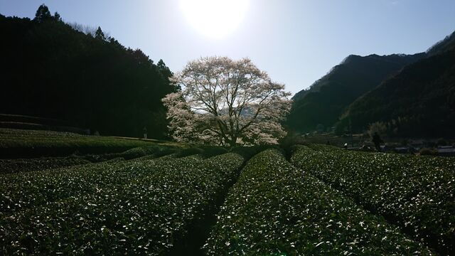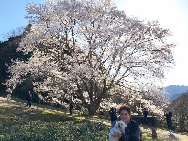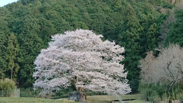 よこや製茶の真ん前に一本桜、薄墨桜が見事に満開でした✨ウグイスの鳴き声、のどかな美杉、癒されました✨