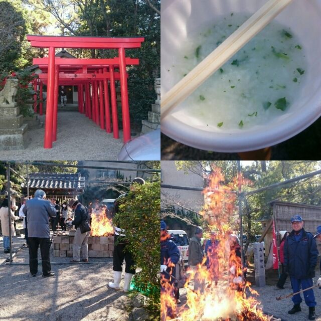 お餅を焼いたり、近所の方々がお世話をされてました。商店街の皆さん、お疲れ様ですm(__)m七草粥も頂きました✨